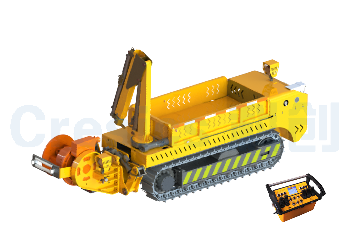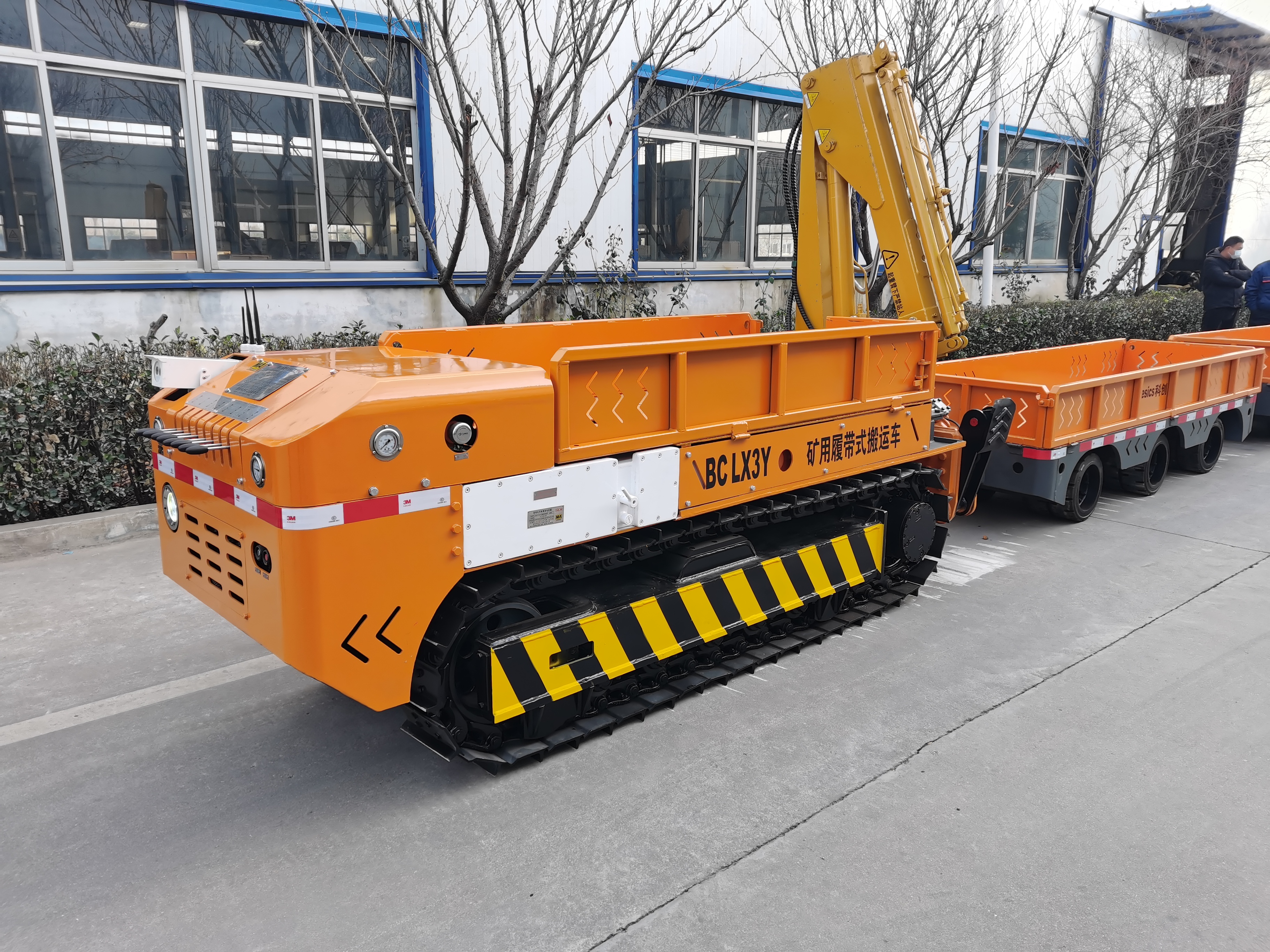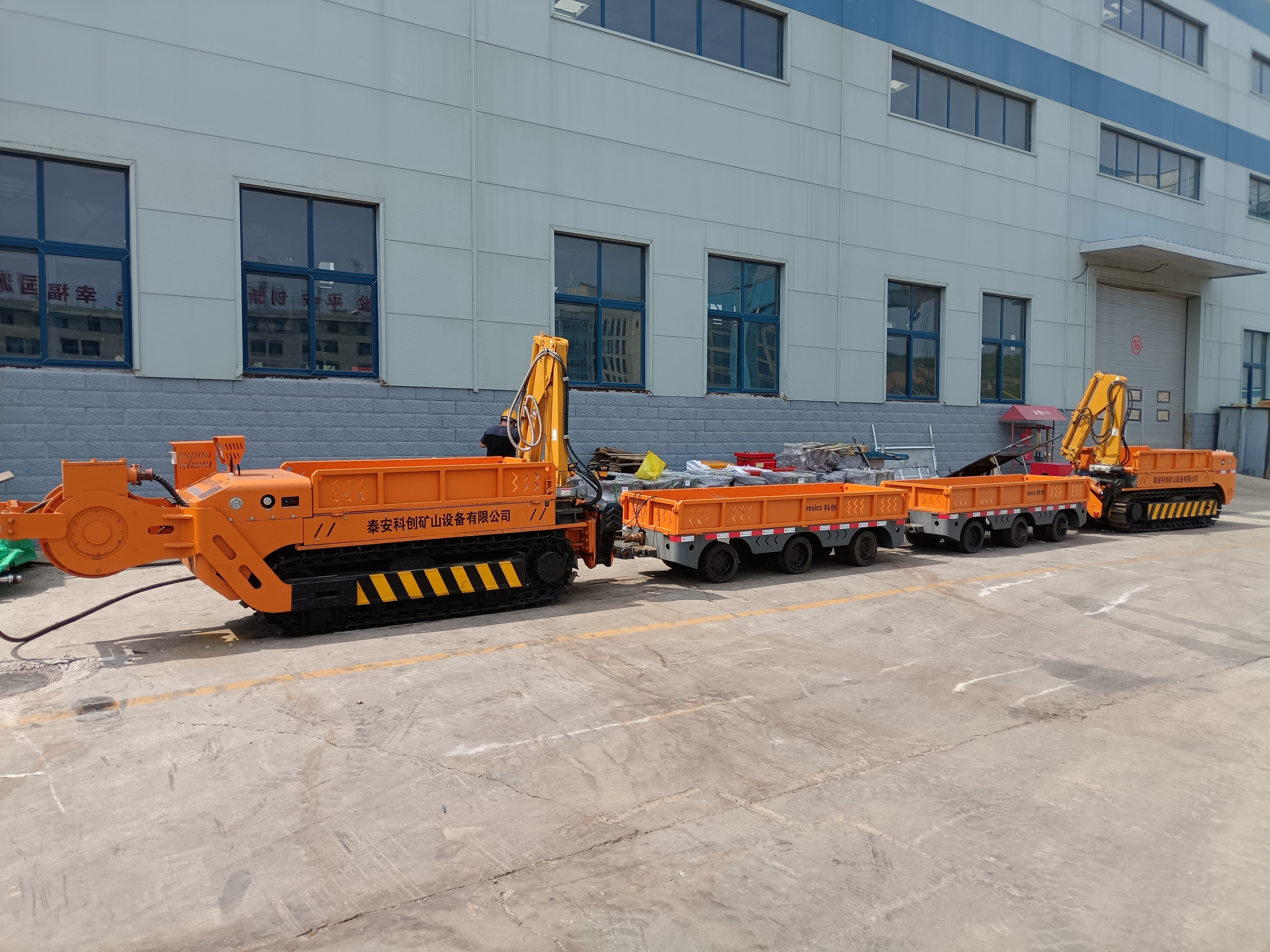 目前掘進作業中,受巷道空間條件所限,膠輪車等運輸車輛只能把輔助材料運到距離迎頭 50 米處,然后 由人工推、拉、扛等方式把物料卸到迎頭位置,長期以來無法實現機械化運輸輔材,該工藝工人勞動強度大, 工作效率低,安全隱患多。減輕職工勞動強度,提高人工效率,改善作業環境,探索無人化或少人化輔助運輸 技術,成為急需解決的問題。