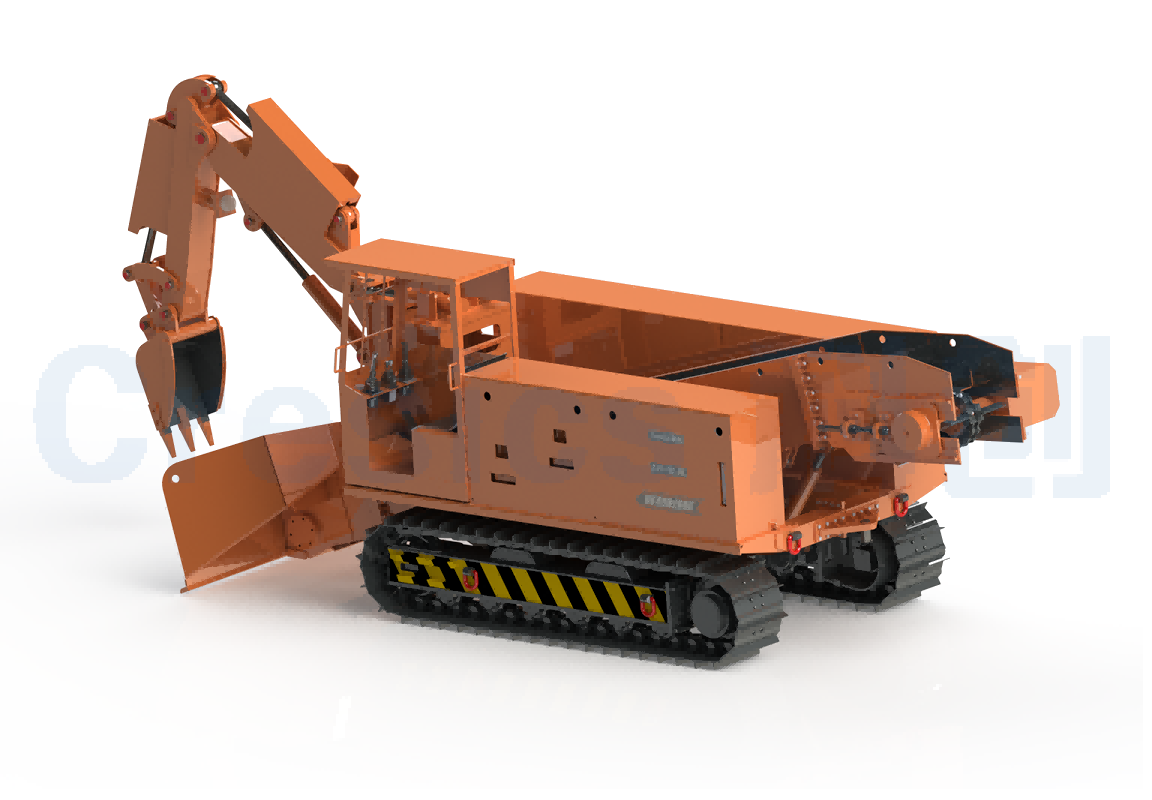 挖掘式裝載機(jī)(俗稱:扒渣機(jī))是一種連續(xù)高效率出礦設(shè)備,是礦山耙斗裝巖機(jī)和立爪裝載機(jī)的理想替代 產(chǎn)品,可滿足巷道小斷面施工裝渣的需要。該產(chǎn)品被廣泛應(yīng)用于礦山斜井和立井平巷的各種斷面的掘進(jìn)裝載作 業(yè),以及磷礦、鐵礦、錳礦等各種礦石的采掘裝車(chē)作業(yè),同時(shí),該產(chǎn)品也廣泛應(yīng)用于修建鐵路隧道、公路隧道、 引水洞工程等各種隧道掘進(jìn)工程中。
